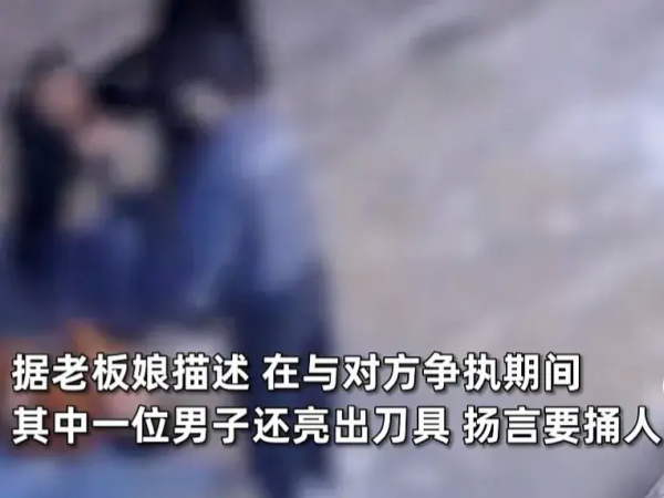 事情是这样的,12.19晚在山东淄博一餐饮店门口,有三个男子吃了饭然后准备走,没想到和店员有了冲突,然后就开始有口角纠纷,这时候老板娘赶过去,然后就有了我们看到的那一幕,三个男子中的一个,竟然特别豪横,扬言说要用刀捅别人!随后就把老板娘推倒在地!店里的女店员听到动静跑出来本想着拉老板娘一把,没想到也被推倒在地,两个受伤的都是女人,都是弱势群体。这三个男子看两个人摔倒在地,才离去!然后老板娘报警了,说虽然他们三个支付了600左右饭钱,但是他们的行为持刀行凶是非常可怕的,现在她们两个人去医院接受治疗。现在当地的派出所已经介入调查!这个老板娘是比较冷静,比较机智的,她说自己也遇到过各种形形色色的人,然后每次遇到醉酒的人,都会一般比较远离。现在遇到这种事,也是比较慌的。希望报警解决,得到合理的对待。