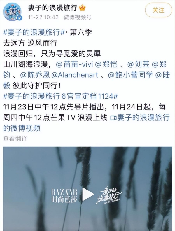 期待!《妻子的浪漫旅行6》定档,郑恺苗苗首合体,陆毅夫妇加盟