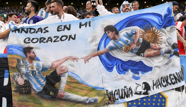 梅西凭借1球1助被评选为全场最佳球员,他的世界杯进球达到8粒,追平了"球王"马拉多纳。2年前,马拉多纳在家中突发心梗去世,梅西在本次世界杯的表现也被视为对这位知名"球王"最好的告慰,一张两人隔空握手的横幅图片在海外社交媒体流传。