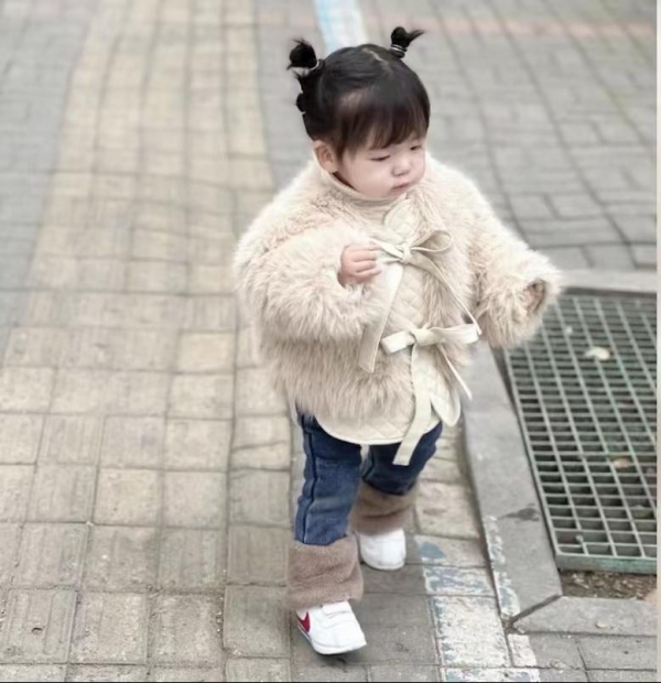 对比原来妈妈带的女儿画面,妈妈是个时髦漂亮的大美女,自然对女儿也很会打扮,平时对女儿都是走的韩版可爱风的路线,给宝宝穿着大牌气质的米色皮草外套,上面还有漂亮的蝴蝶结,搭配蓝色牛仔裤,白色小皮鞋,皮肤白净,吹弹可破,头发挽成了高高的发髻,简直就是白富美气质的小公主。