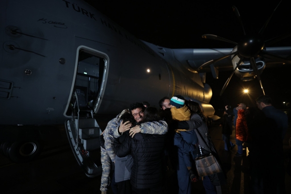 土耳其国防部公布的A400M军用运输机机组在降落后与家人团聚照片