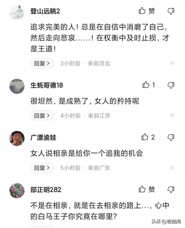有网友评论说,相亲相得越多越难成,在不停的比较中不停地选择和被选择,已经不能沉下来仔细考虑适不适合了,心态已经失衡了。