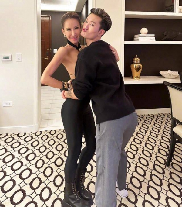 照片中,李玟穿着十分热辣性感,孙侨志揽住李玟的细腰,并贴脸嘟嘴,亲密无间。