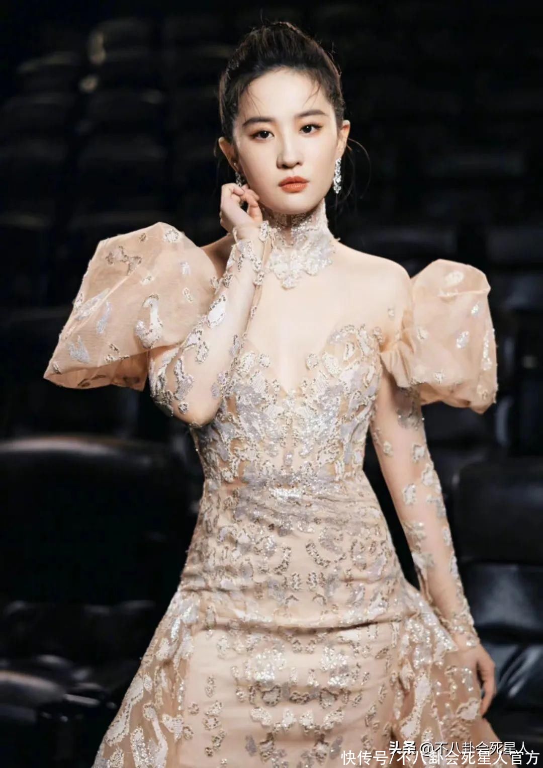 万万没想到,刘亦菲的生图却不是这么一回事。刘亦菲穿着银白色泡泡袖礼服亮相,她的肚子特别突出,与精修相差甚远。