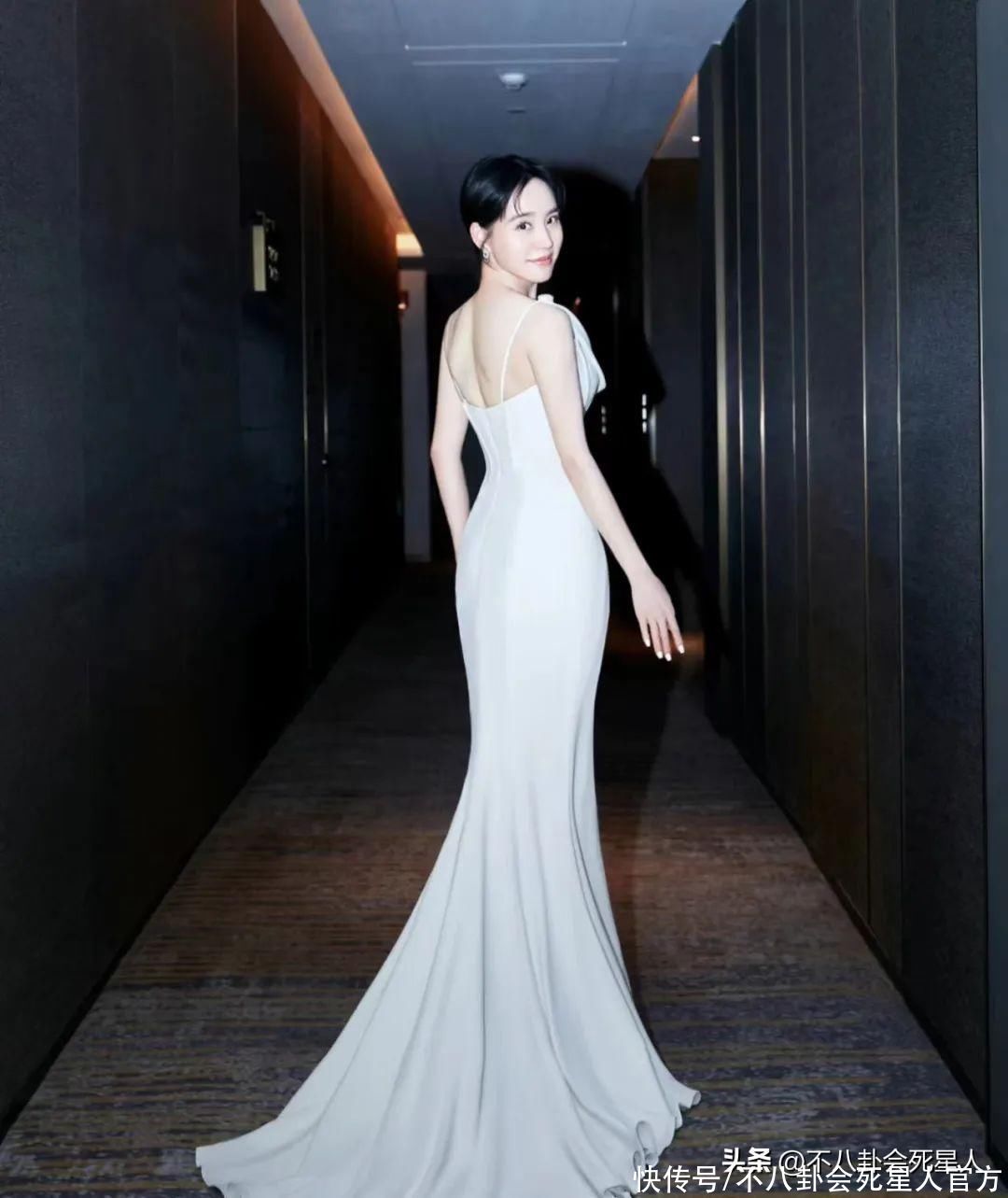 精修图下的王智,穿着白色礼服,她是标准的"S型"曲线,远远看去,又仙又美,优雅大方。
