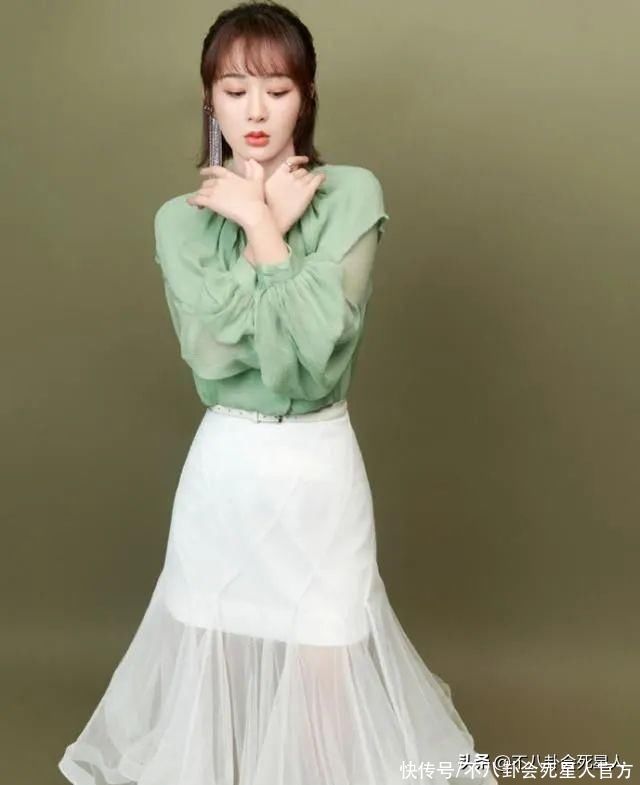 在一次活动上,杨紫身穿碧绿色上衣,搭配白色鱼尾半身裙,她的精修图给人感觉十分清纯,身材苗条。
