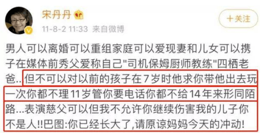 原本孩子也长大了,不太想和英达继续纠缠的宋丹丹看到该访谈后,气得在社交平台上炮轰英达。原来,巴图小的时候也曾表达过对爸爸英达的想念,但英达不仅仅电话都不愿意给,14年来更是形同陌路十分冷漠。