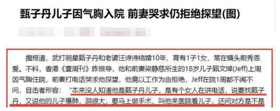 但很快,甄子丹一派"好爸爸"的人设被识破,当年儿子甄文焯因为气胸住院,梁静慈打电话哀求甄子丹能不能来看看儿子也被冷漠拒绝,实在是冷漠至极。