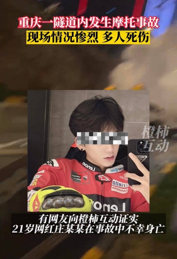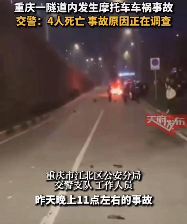 原标题:重庆一隧道发生摩托车事故,21岁网红疑丧生,交警:4人死亡,原因正在调查