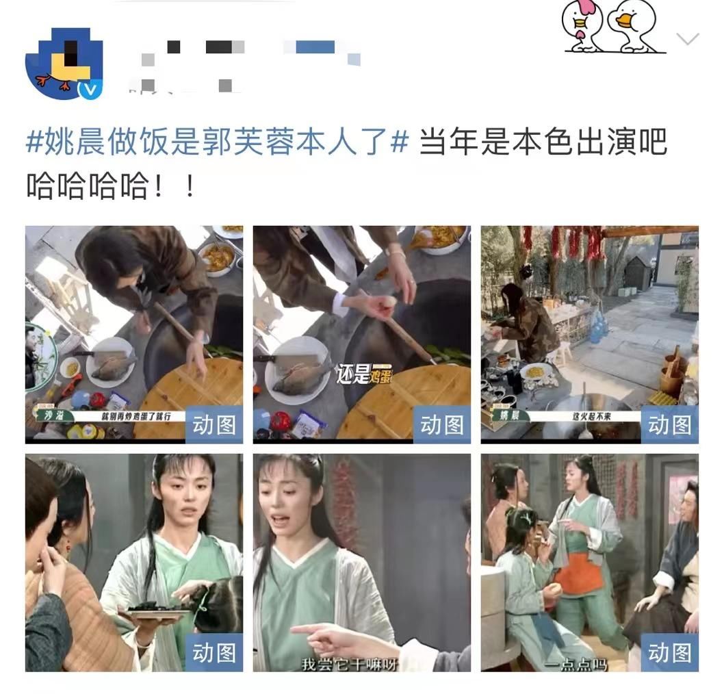 还有部分网友表示,姚晨做饭将生水、生菜叶、生鸡蛋、生西红柿组合在一起的蛋花汤,简直就是郭芙蓉本人,相信当年是本色出演没错了 ,直呼太搞笑了!