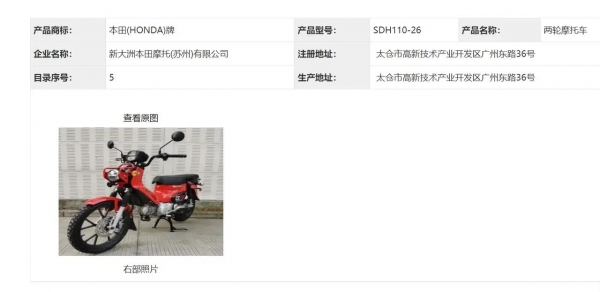 本田幼兽终于要来了!已进入申报阶段,由新大洲生产网传售价1.4万