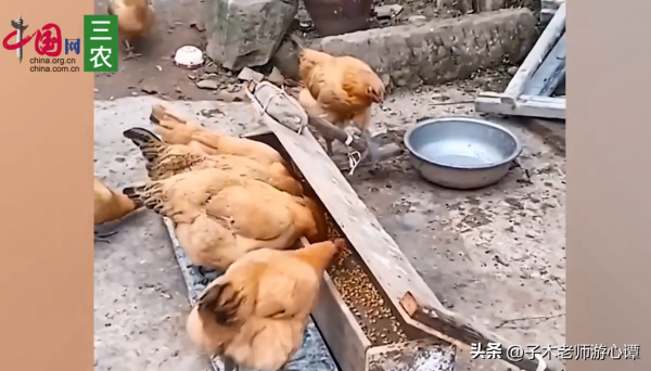 为了改善这种情况,男子亲自设计制作了这个喂鸡神器。鸡踩上板子,用压力打开饲料盖子,就可以自己吃食了。