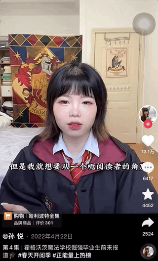 孙悦读的是汉语国际教育专业,身上有股教书育人的劲。起初,她在众多日常生活视频中间,偶尔会分享一些读书笔记,结果发现评论区下多是询问书名的留言,不少粉丝也私信让她推荐书籍。她心想,既然网友相信她荐书的眼光,自己也有分享的动力,就不妨试试看。