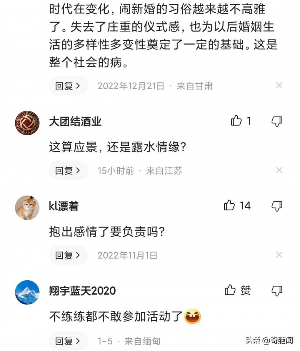 还有网友评论说,伴娘没有用力搂住而已,导致彼此间有距离,全靠伴郎双手托起。