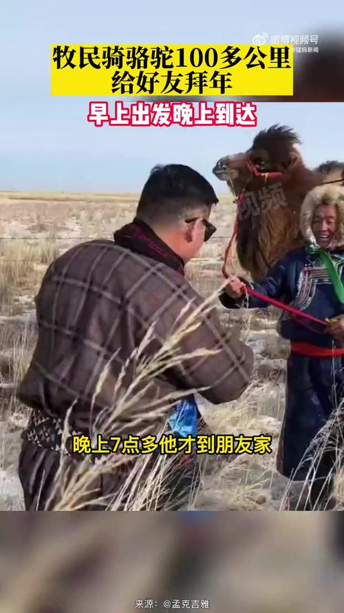 原标题:内蒙古一牧民骑骆驼去给好友拜年:比较有仪式感,骑了11个小时