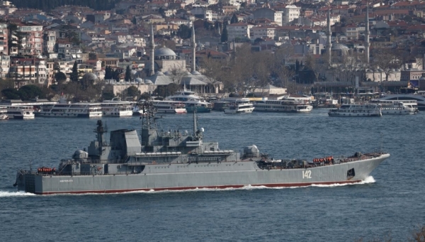 俄黑海舰队"新切尔卡斯克"号登陆舰航经博斯普鲁斯海峡/资料图