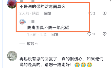 尽管他佩戴了防毒面具,但对抵御一氧化碳的效果有限。这一悲剧再次证明了室内烧炭的巨大风险。