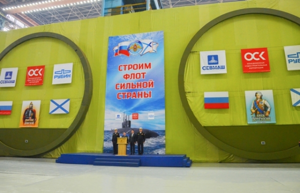 2021年8月23日,两艘955A型战略核潜艇在北方机械制造生产联合体举行开工仪式,左侧部段即为"德米特里·顿斯科伊"号,右侧则为"波将金亲王"号 图片来源:北方机械制造生产联合体