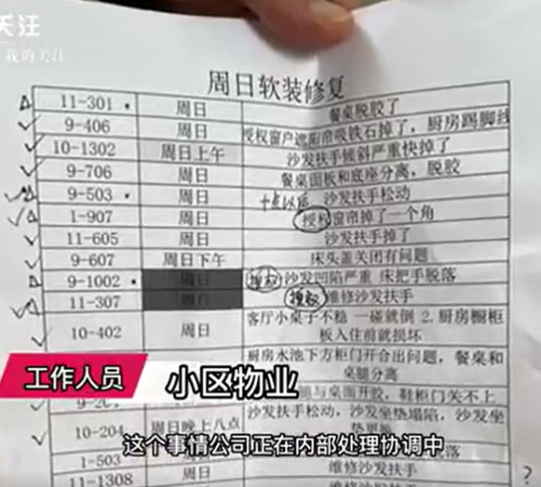 7日,物业工作人员称公司内部正在调查处理此事,不方便透露具体情况。