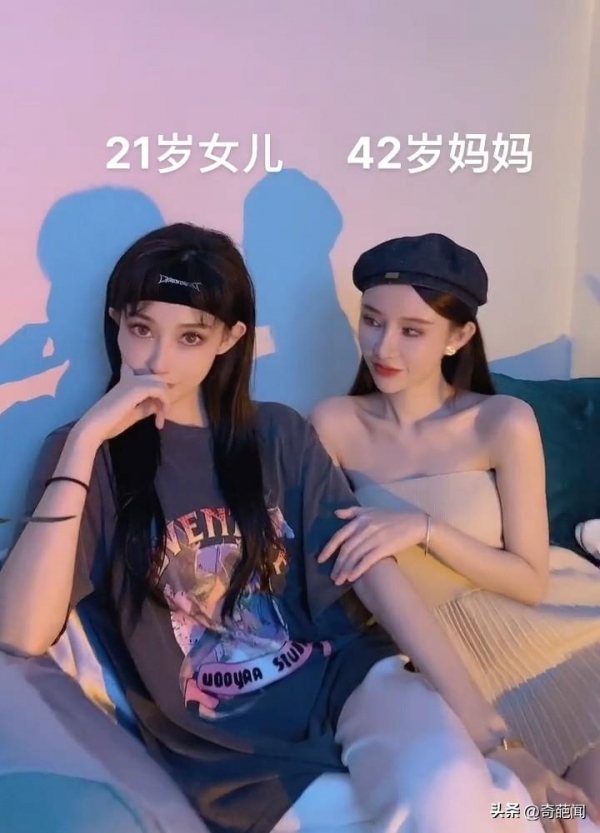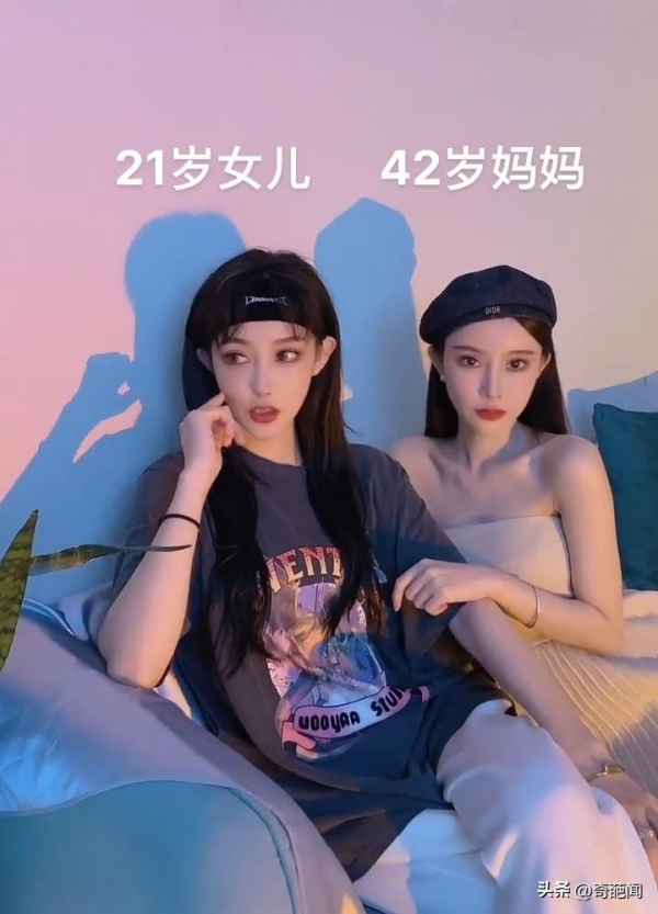 从拍摄的视频显示,画面中这位42岁妈妈在21岁女儿的精心打扮之下,同框亮相如同闺蜜姐妹花一样,只见妈妈原本是身穿抹胸黑色上衣外搭白色针织外套,时尚优雅又文静温柔,女儿则是内搭吊带背心外搭灰色针织外套,妩媚性感。