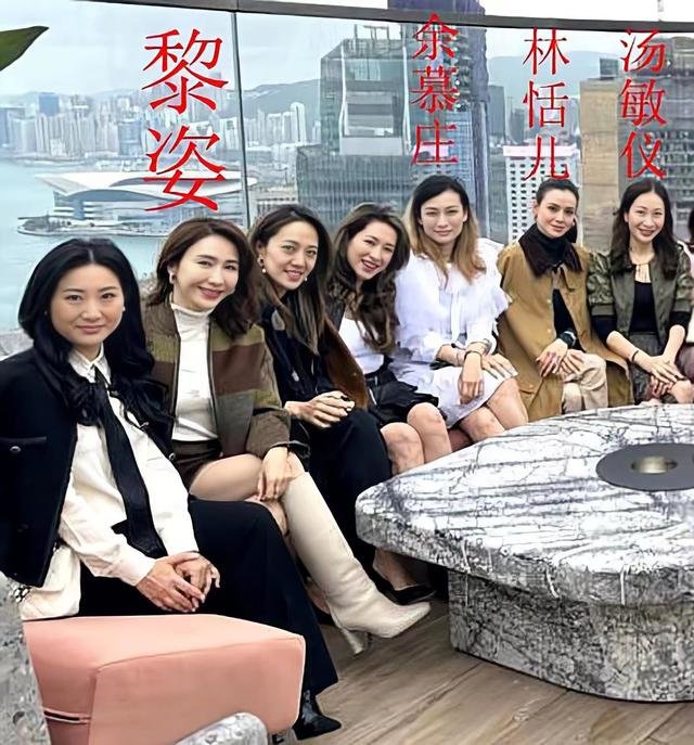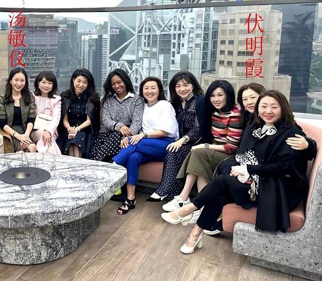 在另一张更加私密的合影中,汤敏仪依然是稳稳当当的C位,伏明霞则坐在她的旁边,却不见黎姿的身影。