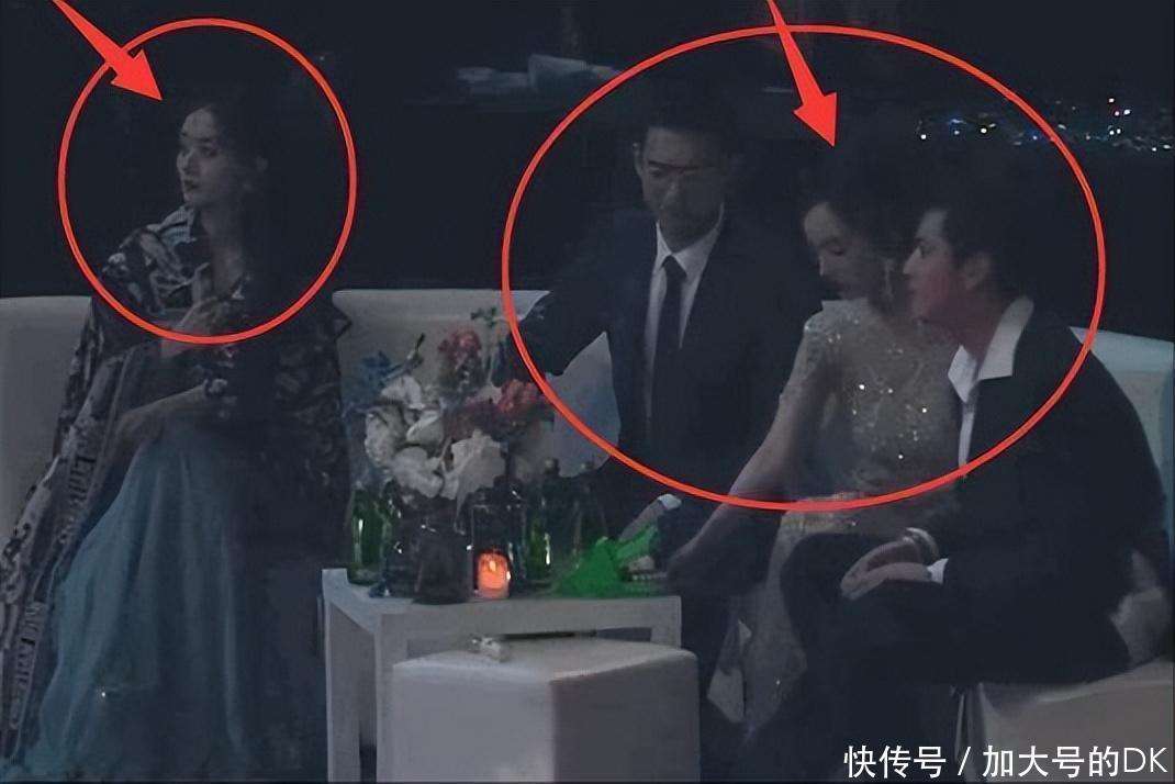 从合照来看,杨幂和两位男士紧紧坐在一起,和赵丽颖中间像是隔了一个东非大裂谷。
