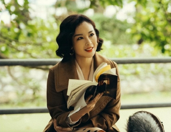 妆容比较清爽,还与绿色的礼服裙还完美结合,涂着红红的红唇点亮全身,一身红唇配绿裙的造型,把高冷的大嫂也变暖了。