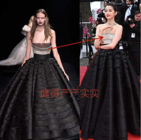 细心的网友还发现,85后高叶很保守,她穿着超模身上的同款礼服裙,居然把开叉的设计给改了?这就是中国女星,既穿出了靓丽的风格,又不露肉,照样不输T台上超模的效果。