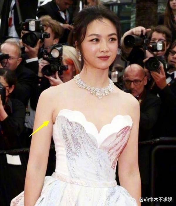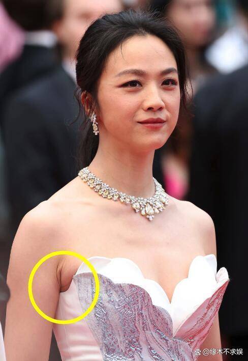仔细看汤唯腋下被挤出不少赘肉,让原本颇为合体的礼裙看上去多了一丝槽点。本以为是拍摄角度的问题,可仔细看腋下这个问题在汤唯每张照片都存在。