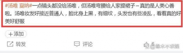 粉丝也表示汤唯人美心善、不争不抢,虽然妆发普通还有很多细节上的槽点,但很美很舒服。