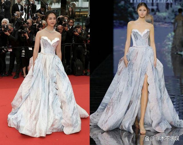 汤唯你这身造型被扒出,原版模特的身材壁垒显然更加完美,也不存在尴尬的腋下问题,且她下摆的开叉设计在汤唯这也没能得到体现,让人感慨汤唯演绎略显失败。