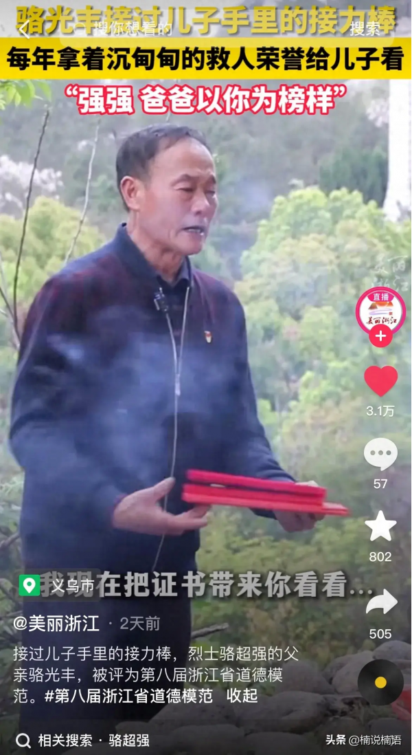骆光丰老人在采访中说过:"每当看到溺水儿童,我都会想起自己的儿子,仿佛冥冥之中注定,我这辈子与下水救人分不开。"他更不希望再有人和他一样,承受丧子之痛。他以儿子为榜样,把儿子没有完成的事业延续下去,这对父子真的了不起!