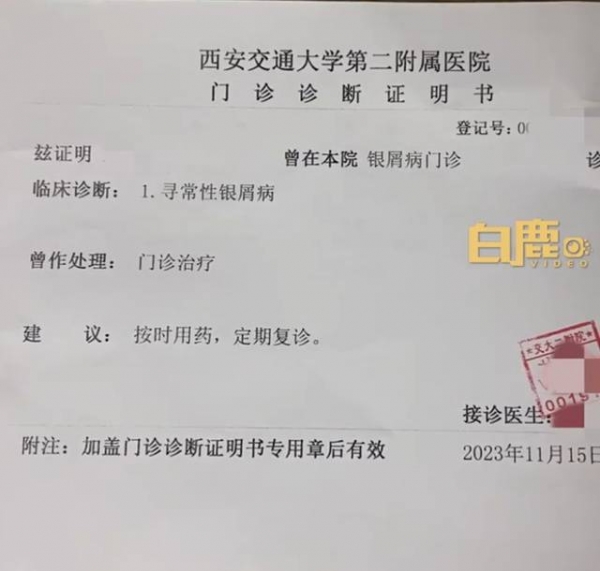 据白鹿视频报道,近日,陕西西安一女子染发时不慎将染发膏粘在头皮上致真菌感染,后患银屑病,为进行治疗剃光头发。