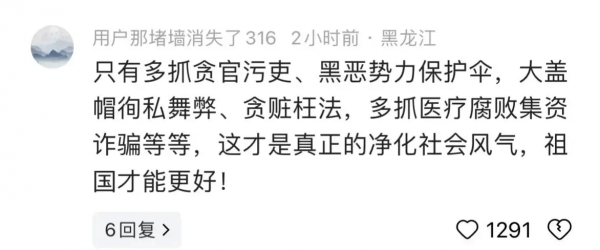 只有多抓贪官污吏,黑恶势力保护伞,大概冒徇私舞弊,贪赃枉法,多抓医疗腐败,集资诈骗等等,这才是净化社会风气,祖国才能更好。