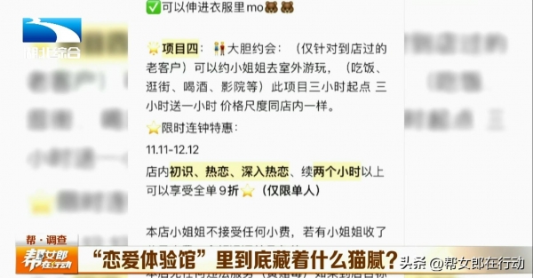近日,帮女郎根据武汉热心市民提供的信息,来到了一家位于光谷附近,名为"简爱"的恋爱体验馆,老板见到记者到店后,主动热情地带记者进行参观,并介绍起了店内的套餐。"我们有298、398、498的套餐,298元就是找个妹妹,陪你看电影、喂食、聊天那种,大多数客人都选择498元的,498元的套餐就是可以摸胸、亲她都可以。"