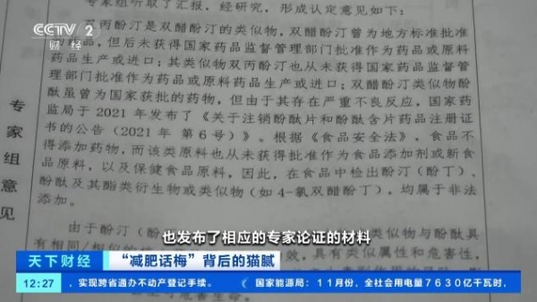 苏州市食品检验检测中心副主任 丁洪流:联合专家论证已经论证了这两个物质是属于同类型的化合物,具有相同的毒害性,是属于非法添加的物质。国家市场监督管理总局也发布了相应的专家论证材料,论证意见认定酚汀类的化合物包括它的一些结构类似物都是属于非法添加的有毒有害物质。