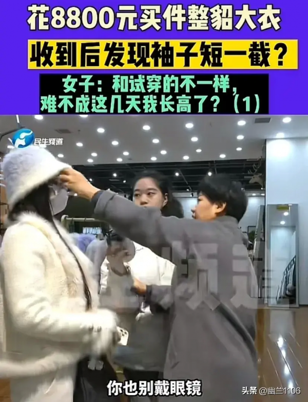 这家店太狂啊!当着记者的面都敢直接上手抓顾客脸,近日,河南郑州魏女士花8800元买件整貂大衣,收到后发现袖子短一截,和试穿的时候不一样,魏女士很纳闷:难不成这几天我长高了?