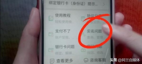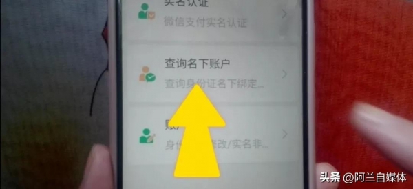 立刻在这里就出现了一个实名问题,我们把这个"实名问题"点开,那么在这里就可以看到有"查询名下账户",也就是查询我们身份证名下绑定的微信账户有几个。