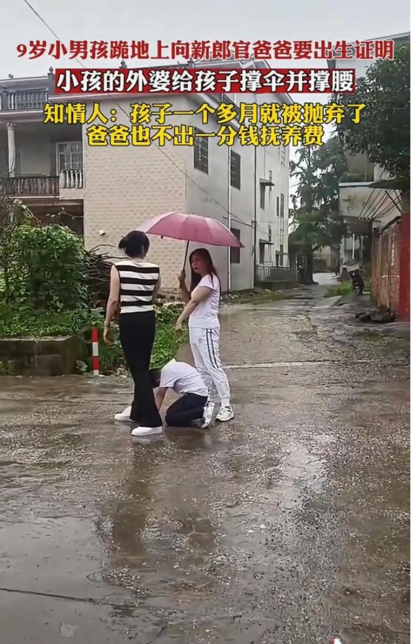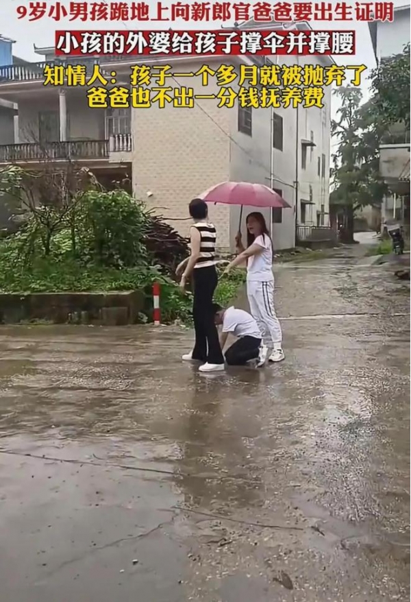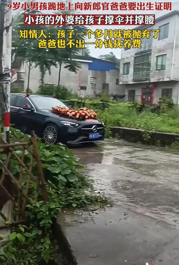 6月25日,广西,一段9岁男孩雨天哭着跪在爸爸婚车前,只为索要出生证明的视频引发关注。网友看后,忍不住吐槽,男孩的妈妈当初是怎么看上这个男人的?