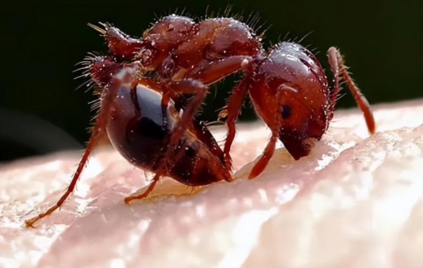 说起来,这是因为红火蚁是一种毒性很大的动物,当被它叮咬的时候,它的大量毒液就会进入伤口,随后,患处皮肤也会出现一系列地中毒反应,比方说,红肿、瘙痒,甚至会出现脓包,并且很容易引发细菌感染,最终威胁生命。