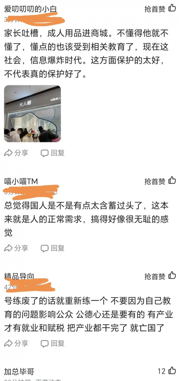 这就让某些家长开始担心起来了,毕竟成人用品店入驻商场,要是自家高中生初中生的孩子进入商场,突然闯入这家店该怎么办?