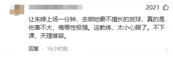 "只上场一分钟,还是她最不擅长的发球,这种做法真是伤害性不大,侮辱性极强,这教练到底在想什么"