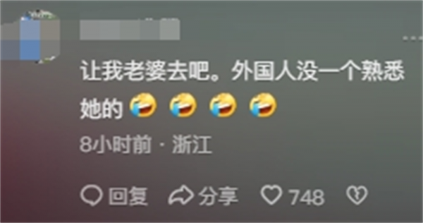 对此网友犀利点评道:"让我老婆去吧,外国人没一个熟悉她的"。