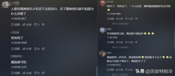 特别是被爷爷奶奶带大的人,他们根本见不得这样的画面,更是隔着屏幕痛哭到崩溃,如果不是这段监控的曝光,他们根本不知道,家里的老人远比自己想象中孤独的多。
