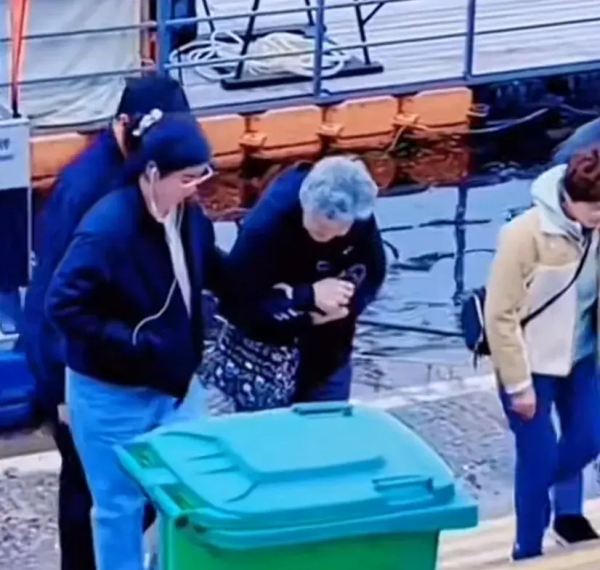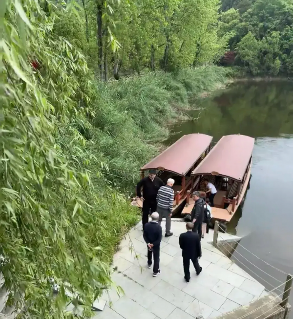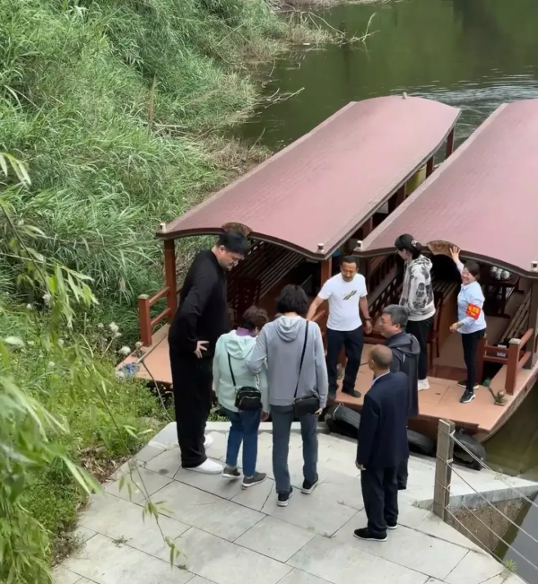 一家人去乘船,姚明等家人都上船之后,他才上去。姚明的父亲姚志源,年轻时也是一名篮球运动员,身高2.08米,他比妻子小4岁,老爷子身体看起来更硬朗,依然健步如飞。