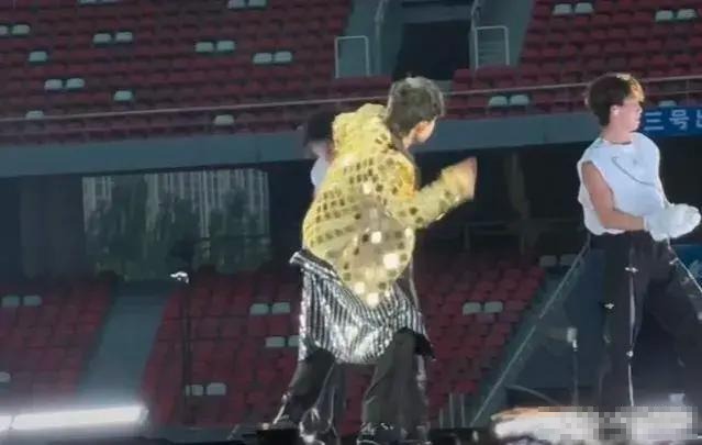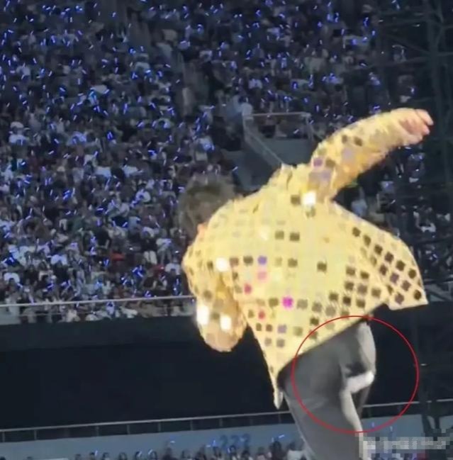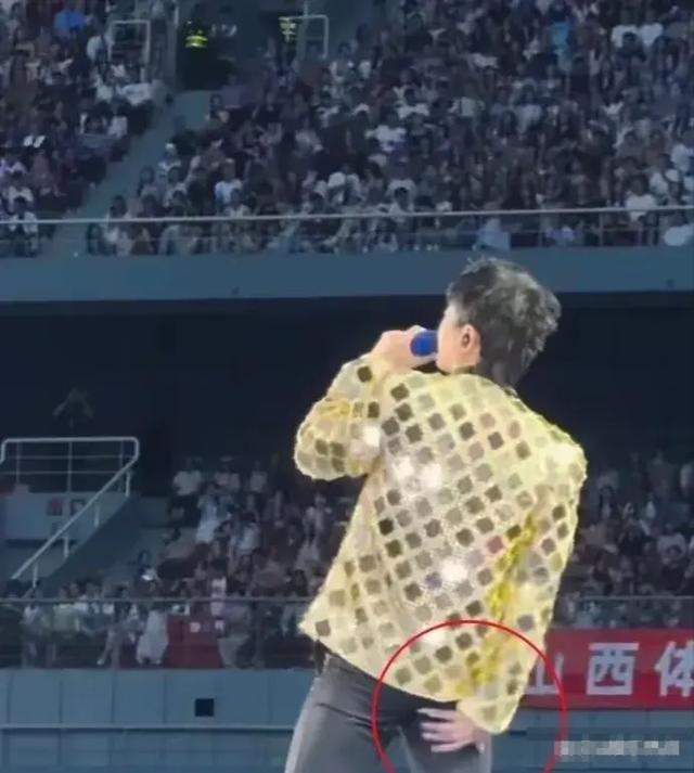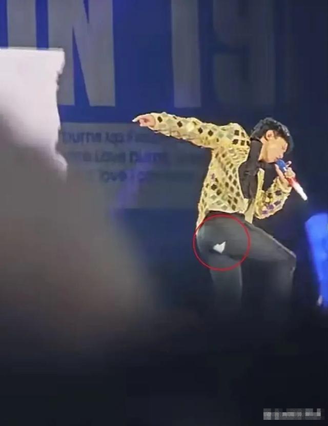 在演唱过程中,张杰特意用手捂住裤子破损的部分,显然是担心被媒体拍到不雅的画面。