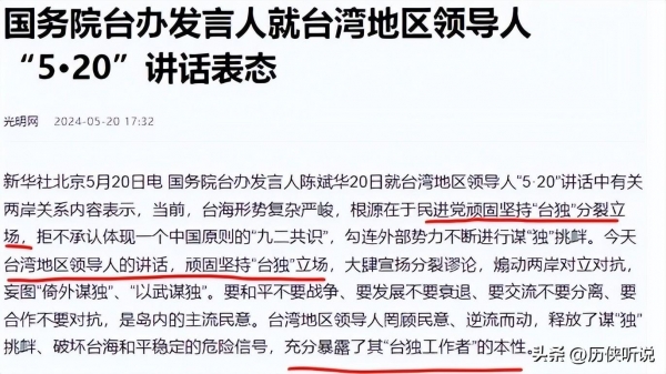 赖清德的"520讲话",义正言辞的强调自己的"台独"立场,大肆宣扬分裂大陆和台湾的言论,这个导火索直接将两岸关系的发展推向顶峰。