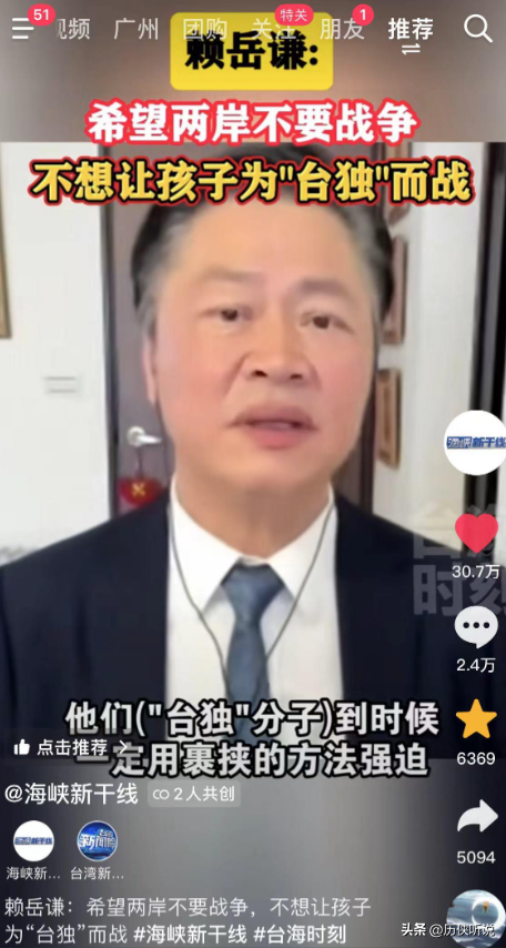 他还表示,赖清德不顾民众的发言直接逼的大陆作出回应,让台湾民众忧心忡忡,到底是有什么"阴谋"!既有权利又有预算为何还不满足!自己"不知死活"的发言不要让台湾孩子为你付出代价!
