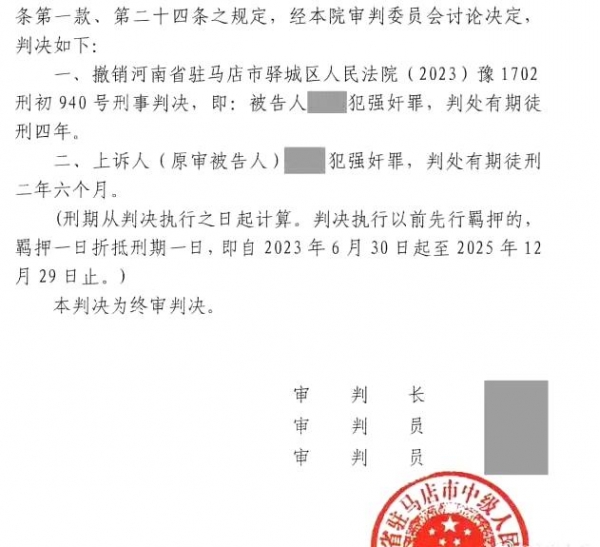 北京时间5月13日讯:驻马店一男子与16岁女孩相约开房涉嫌强奸二审改判以强奸未遂量刑2年6个月。据了解2023年6月份河南驻马店男子魏某与16岁女孩小雨(化名)相约开房,事发十几天后魏某因涉嫌强奸被刑事拘留后被正式批捕。该案一审判决魏某获刑4年,此后魏某上诉,最终该案二审以"强奸未遂"给魏某定罪并判刑两年6个月。