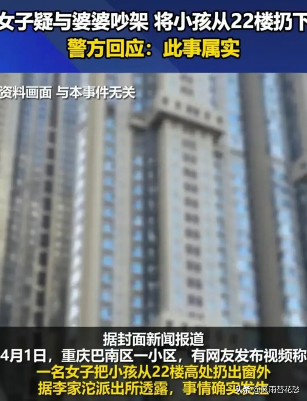 4月1日,一段令人揪心的视频在网络上迅速传播开来。视频中,一名女子在22楼高空的窗边,竟然将一名三岁幼童从窗户扔下!